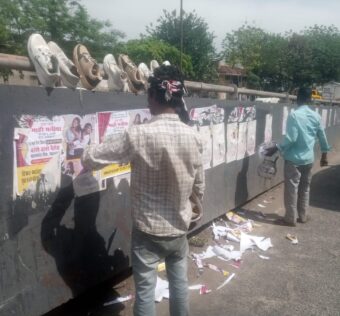 जालंधर में बिना परमिशन सरकारी प्रॉपर्टी पर पोस्टर लगा रहे युवकों को रोका, समाजसेवी ने मौके पर उतरवाए पोस्टर