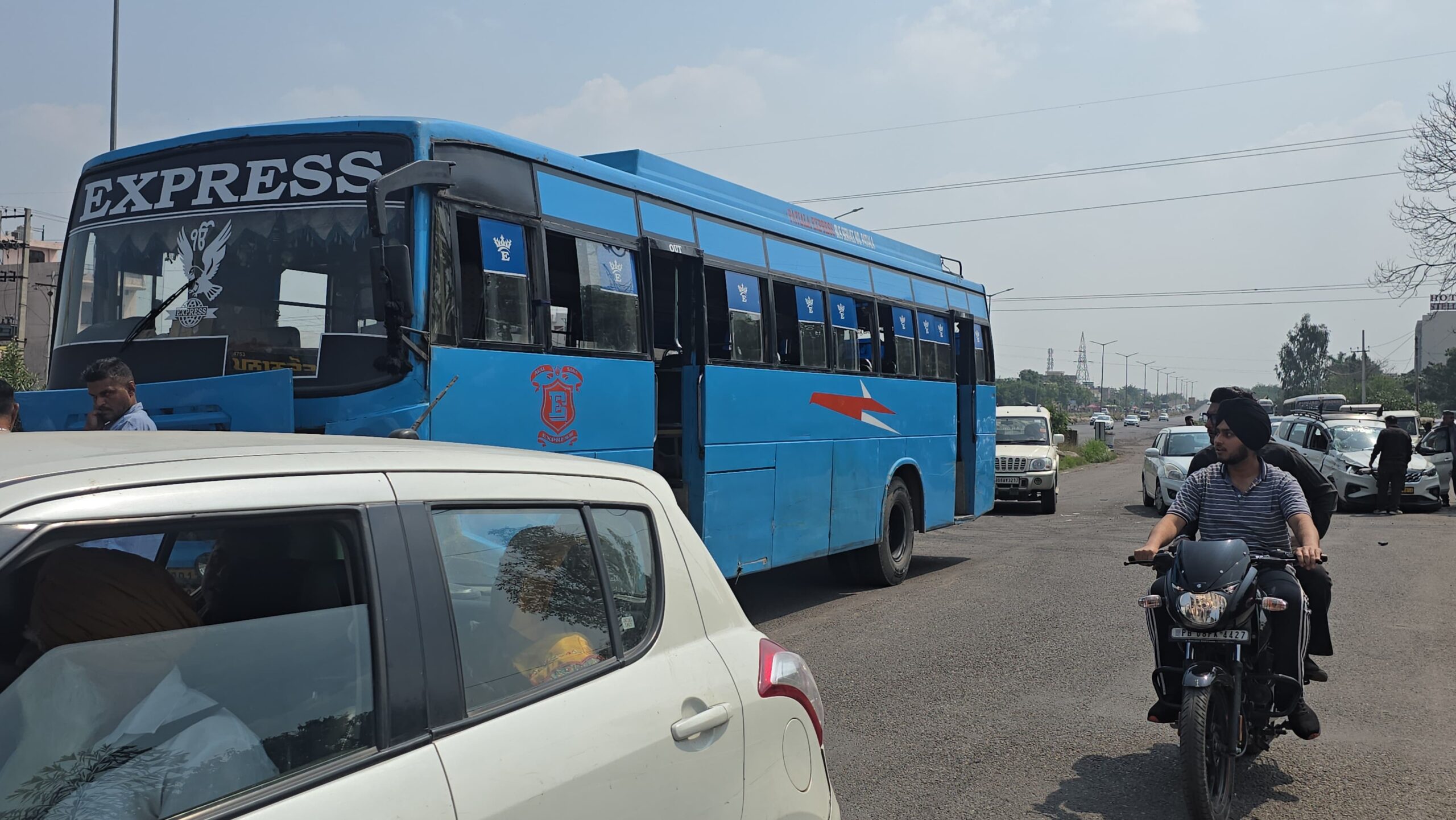 जालंधर लुधियाना हाईवे पर तेज रफ्तार बस ने कार को मारी टक्कर