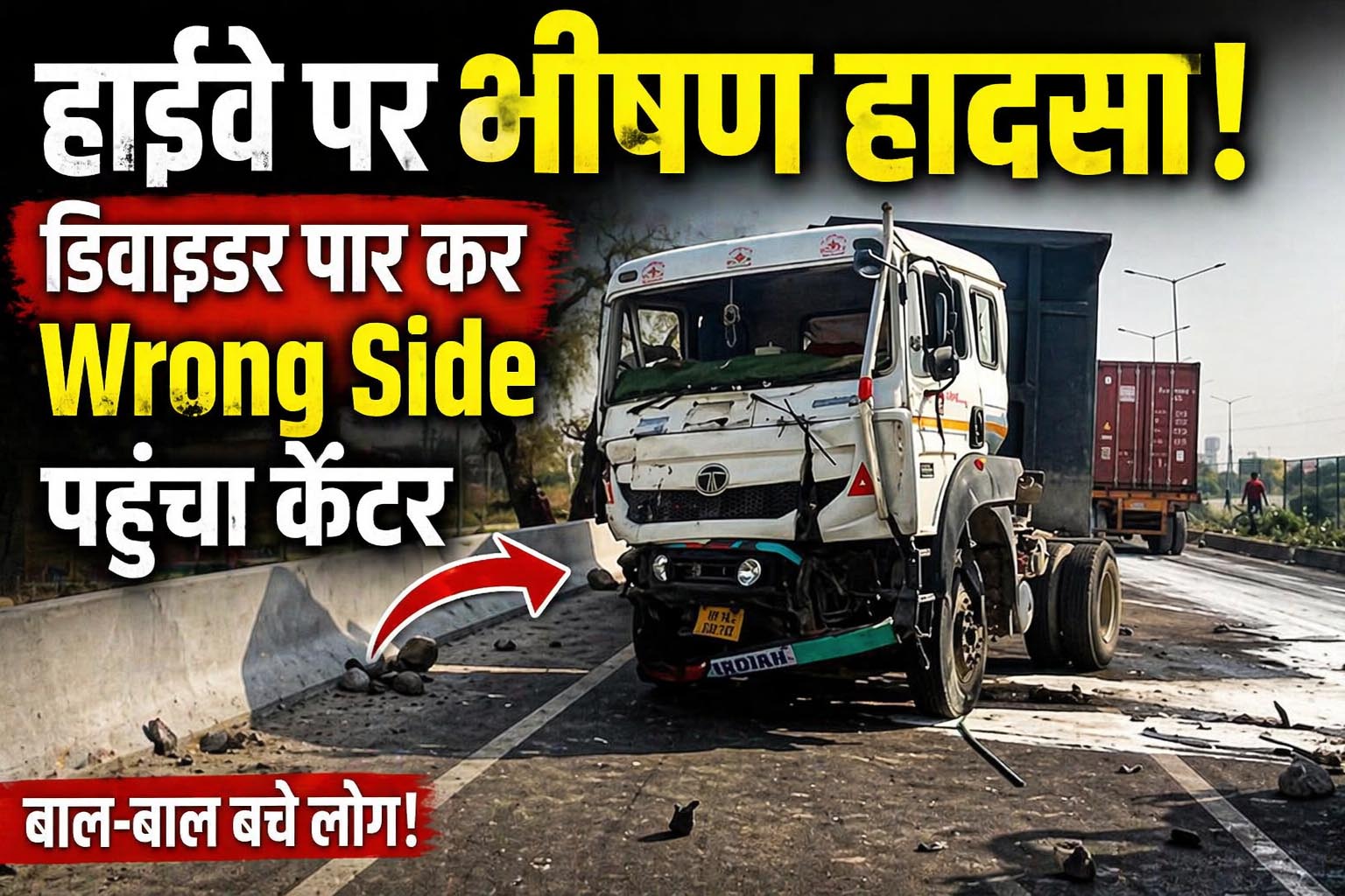 हाईवे पर भीषण हादसा,डिवाइडर पार कर Wrong Side पहुंचा कैंटर