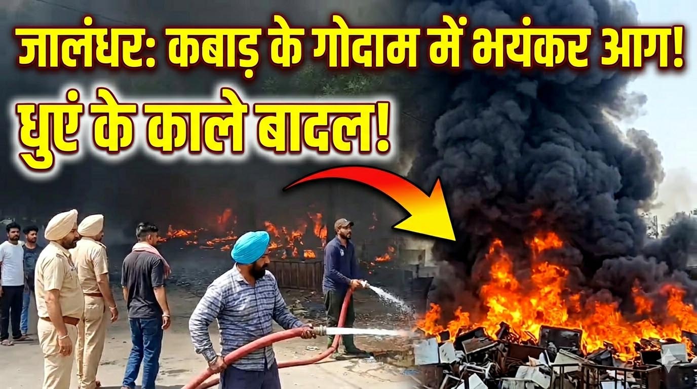 जालंधर के इस इलाके में स्थित कबाड़ के गोदाम में लगी भयंकर आग,आसमान में छाए धुएं के बादल