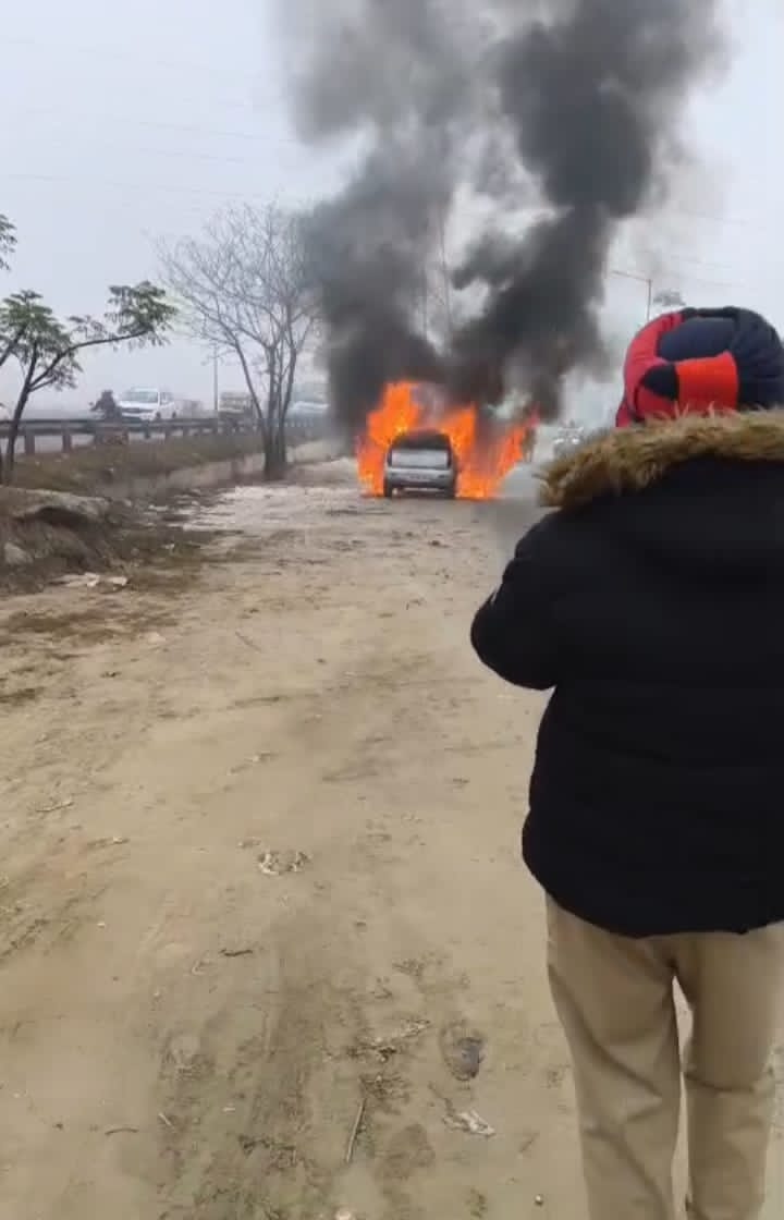 जालंधर नेशनल हाईवे पर चलती कार में लगी आग,बाल बाल बचा चालक, देखें वीडियो