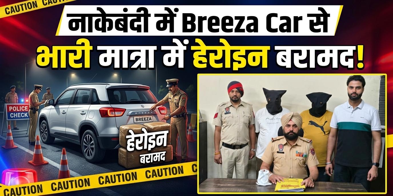 नाकेबंदी में रोकी Breeza Car, अंदर से भारी मात्रा में मिली हेरोइन