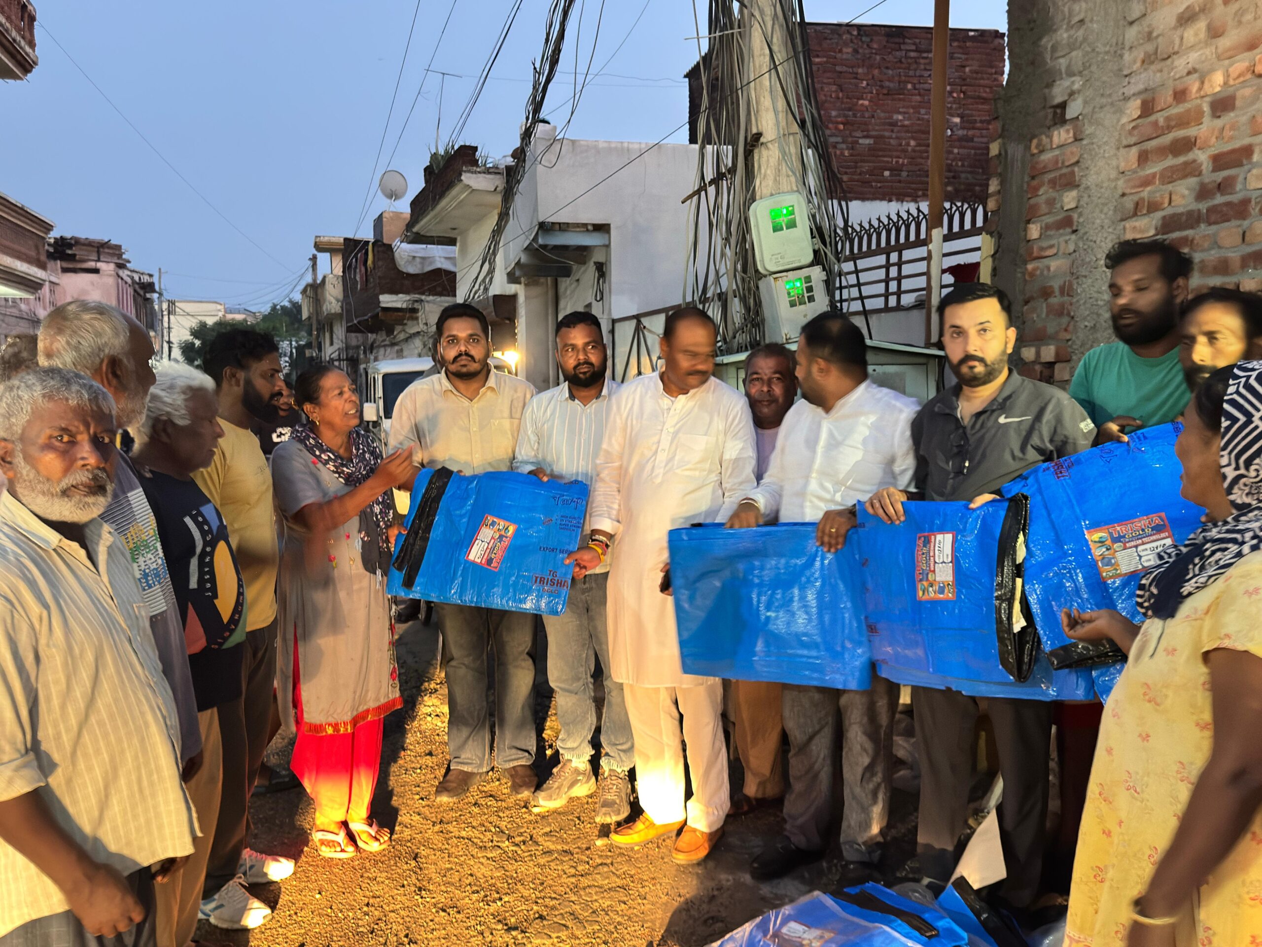 भाजपा नेताओं ने जालंधर कैंट विधानसभा के गांवों में बरसाती पानी से परेशान कच्चे मकान वालो को बांटी तिरपाले