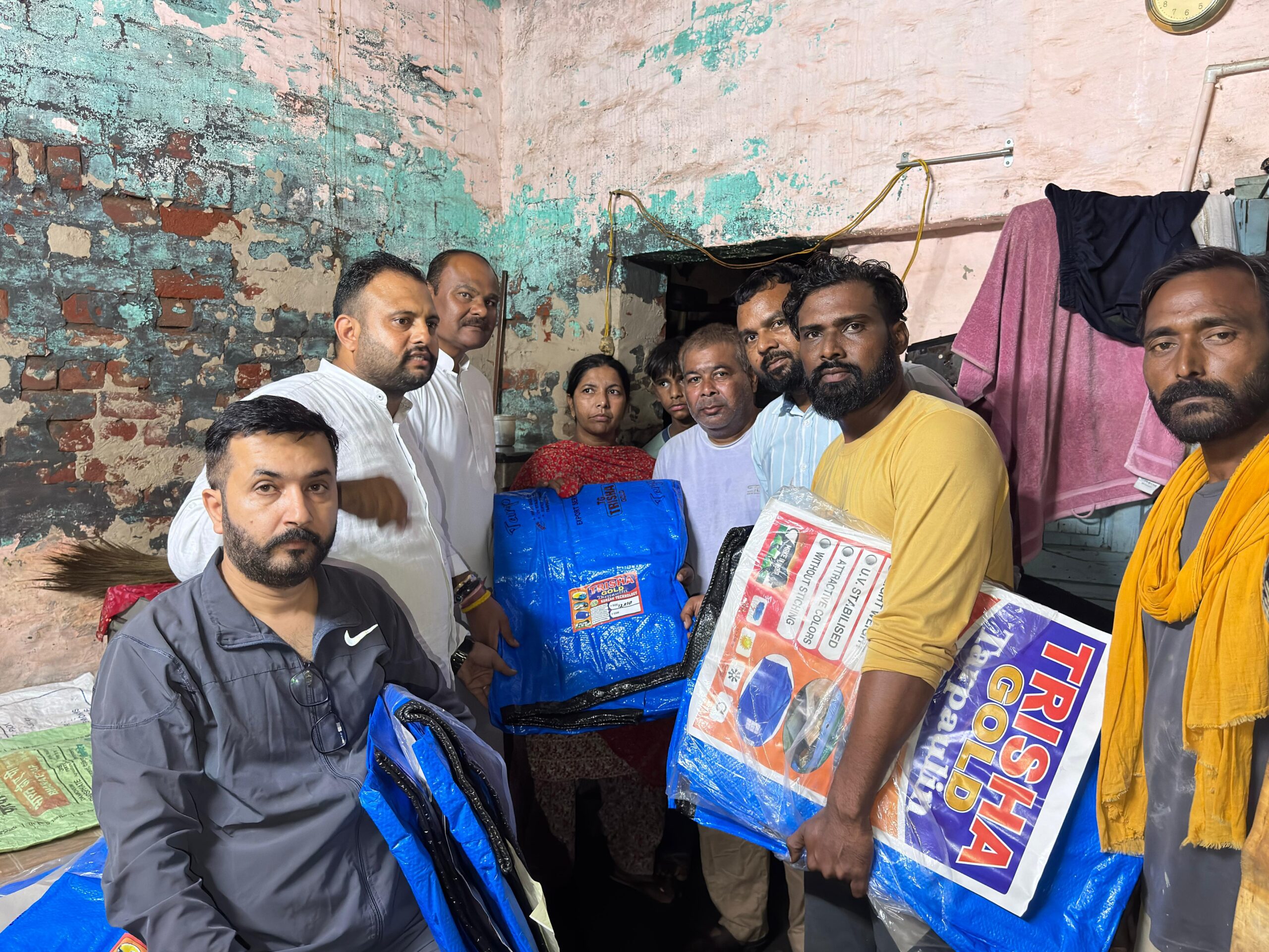 भाजपा नेताओं ने जालंधर कैंट विधानसभा के गांवों में बरसाती पानी से परेशान कच्चे मकान वालो को बांटी तिरपाले