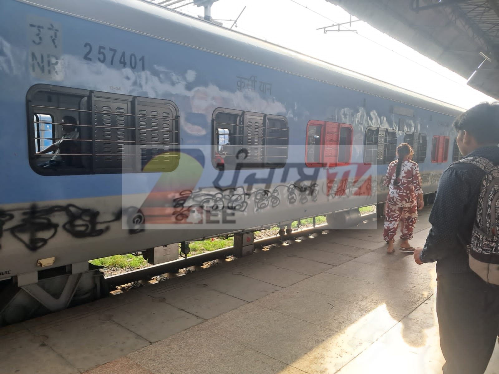 यह घटना कोच संख्या 11 में हुई। प्रशासन ने कोच का निरीक्षण किया है और इस पर लिखे नारे को मिटा दिया गया है। फिलहाल सुरक्षा एजेंसियां भी इस बात की जांच कर रही हैं कि नारा किसने लिखा था और इसको लिखने में इसके पीछे क्या मंशा थी।
