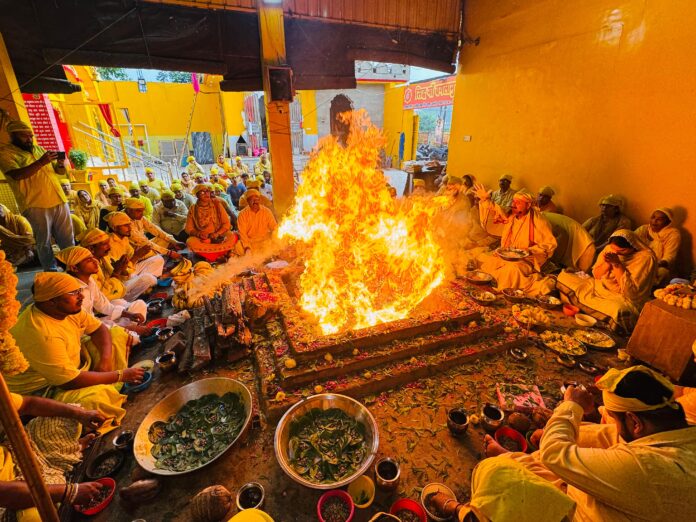 जालंधर 24 जुलाई ( ब्यूरो) : मां बगलामुखी धाम गुलमोहर सिटी नज़दीक लमांपिंड चौंक जालंधर में सामुहिक निशुल्क दिव्य हवन यज्ञ का आयोजन मदिंर परिसर में किया गया।