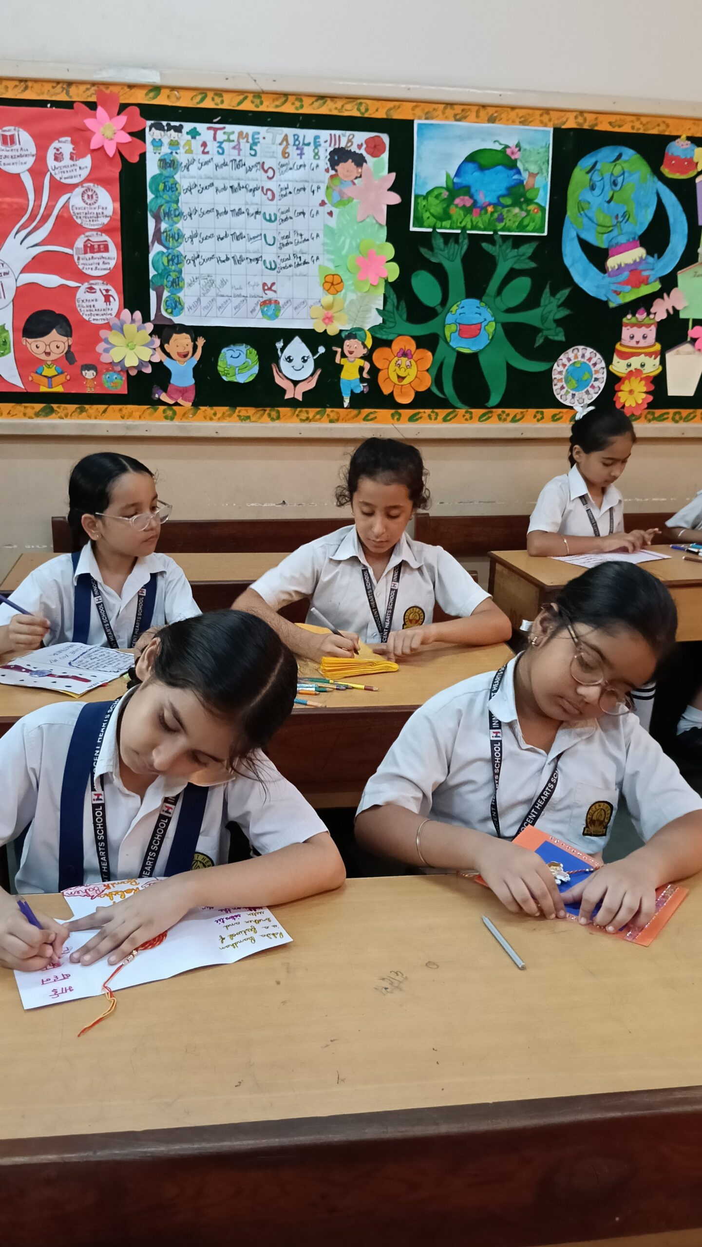 कक्षा तीन के छात्रों ने रचनात्मक अभिव्यक्ति के माध्यम से भाई-बहनों के बीच के बंधन को मज़बूत करने के लिए सुंदर हस्तकृत राखियाँ और कार्ड बनाए।
