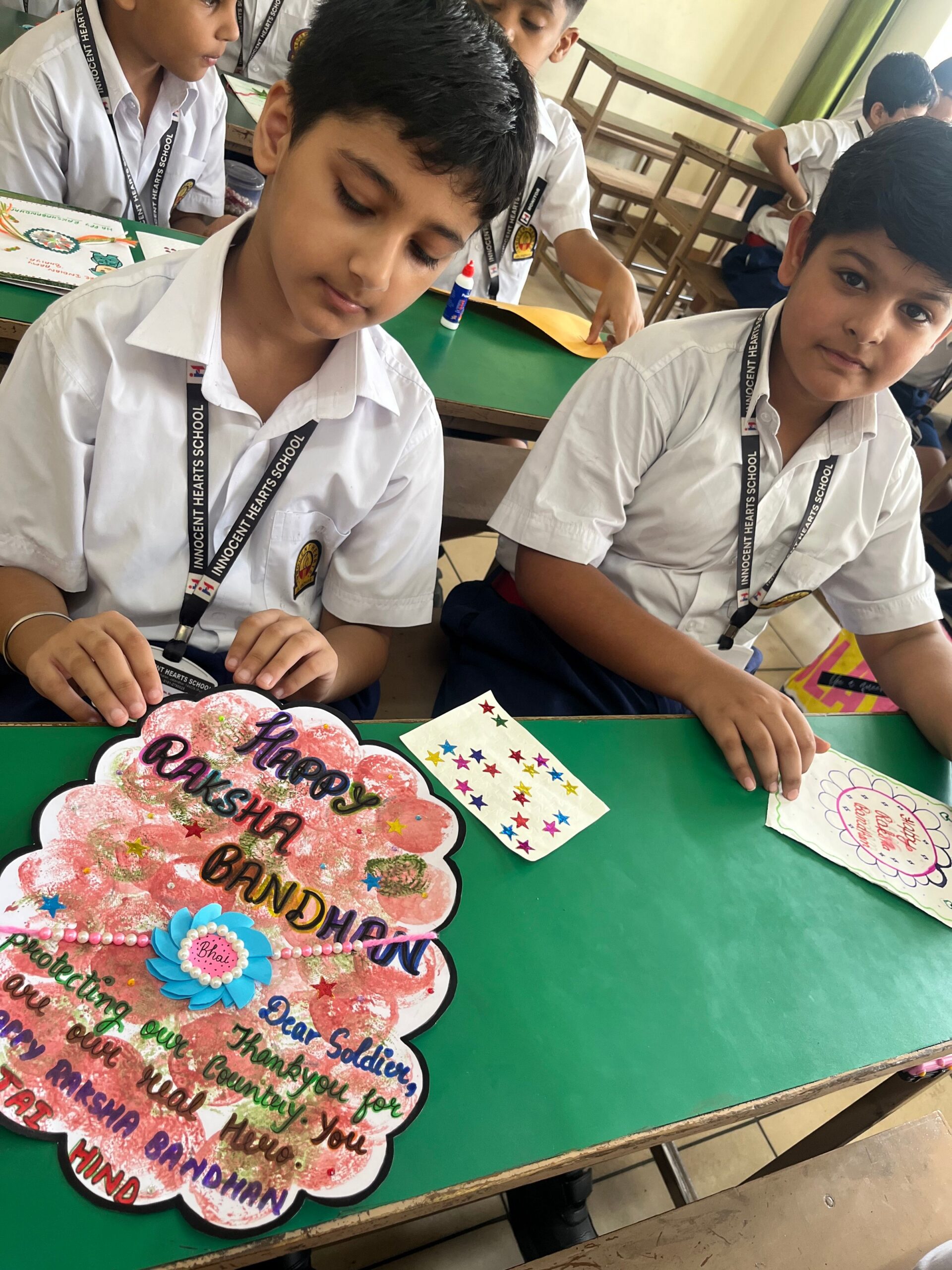 कक्षा IV, V, VI के विद्यार्थियों ने भारतीय सैनिकों के प्रति अपने समर्पण, सम्मान, प्रेम और करुणा को दर्शाने के लिए राखी का भव्य त्योहार मनाया। उन्होंने तिरंगे की थीम पर ‘धन्यवाद, सैनिक’ के संदेश के साथ पर्यावरण के अनुकूल राखियाँ बनाईं।
