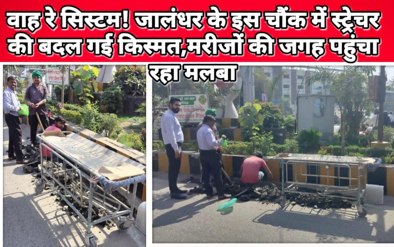 वाह रे सिस्टम! जालंधर के इस चौंक में स्ट्रेचर की बदल गई किस्मत,मरीजों की जगह पहुंचा रहा मलबा
