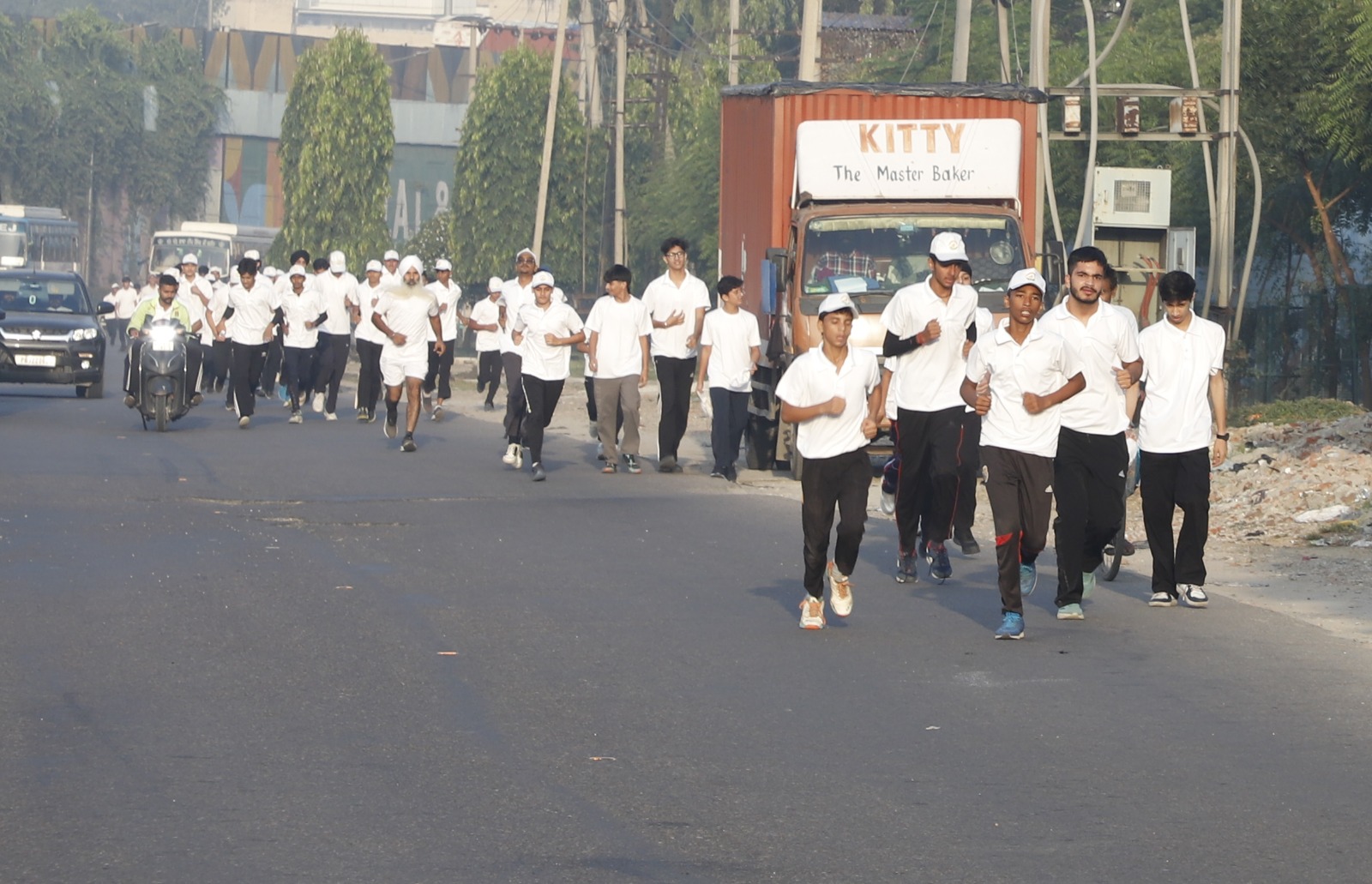 मैराथन पुलिस डीएवी पब्लिक स्कूल के प्रांगण से शुरू होकर गेट नंबर पांच, गेट नंबर चार, गेट नंबर तीन से होते हुए वापस स्कूल पहुंची।