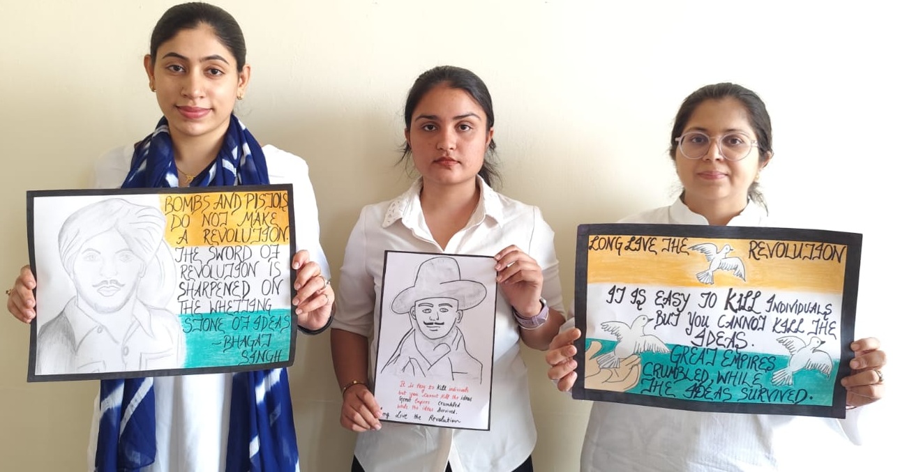 जालंधर 22 मार्च (ब्यूरो) : इनोसेंट हार्ट्स ग्रुप ऑफ इंस्टीट्यूशंस और इनोसेंट हार्ट्स कॉलेज ऑफ एजुकेशन ने शहीद भगत सिंह, शिवराम राजगुरु और सुखदेव थापर को याद करते हुए प्रेरक कार्यक्रम आयोजित किए। एनएसएस इकाई द्वारा शहीदी दिवस पर ‘अमर स्वतंत्रता सेनानियों के नारों का पुनरुत्थान’ विषय पर नारा लेखन प्रतियोगिता आयोजित की गई।