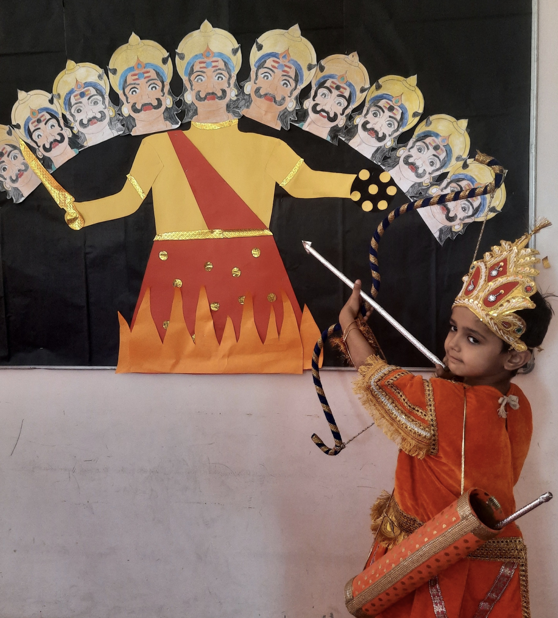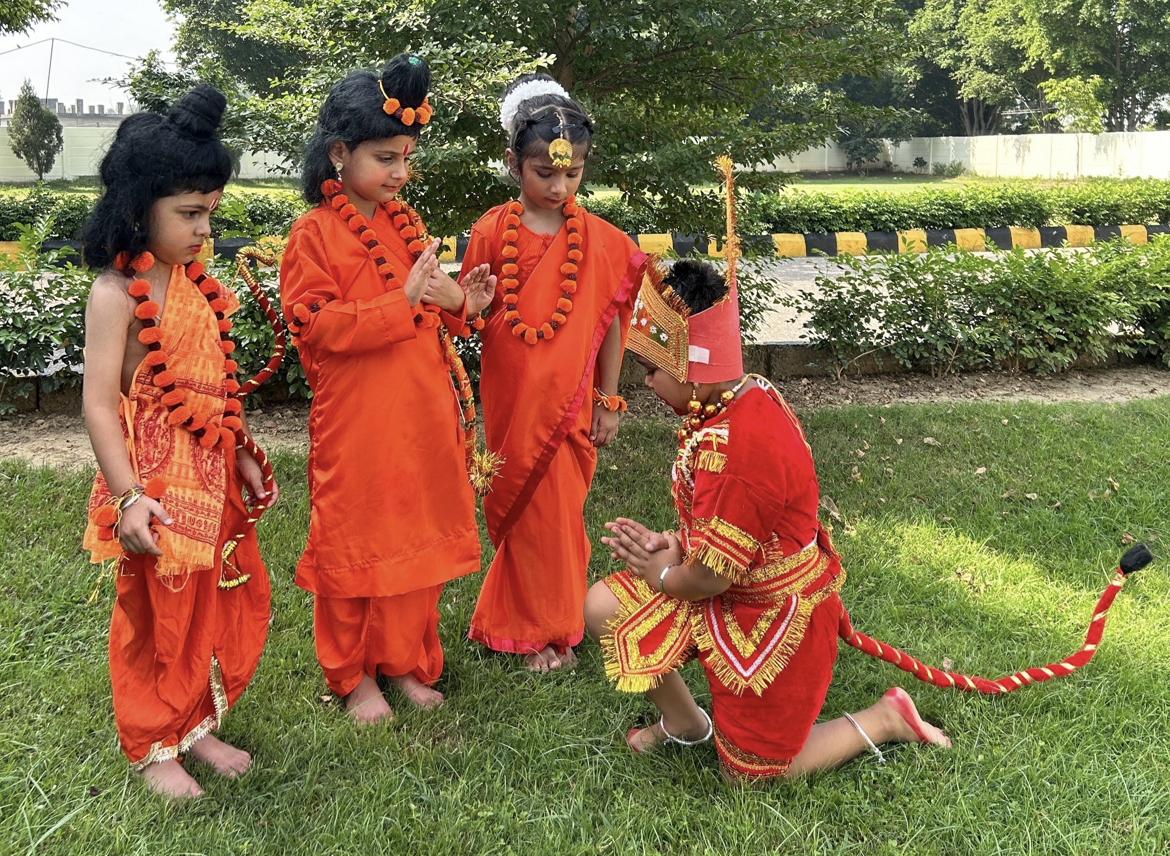 प्री-प्राइमरी के बच्चों ने रामायण के पात्र,भगवान राम, माता सीता, लक्ष्मण और हनुमान के रूप में प्रस्तुति दी। बच्चे बेहद प्यारे लग रहे थे और उन्होंने अपनी मासूमियत और आकर्षक अभिनय के साथ महाकाव्य को जीवंत कर दिया।