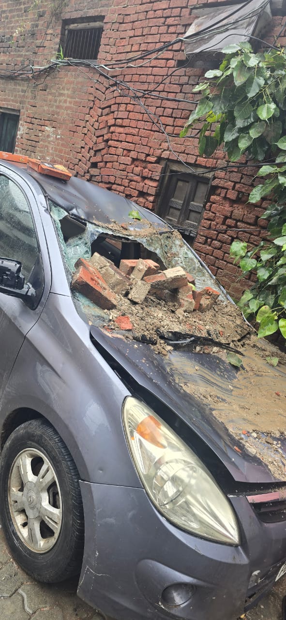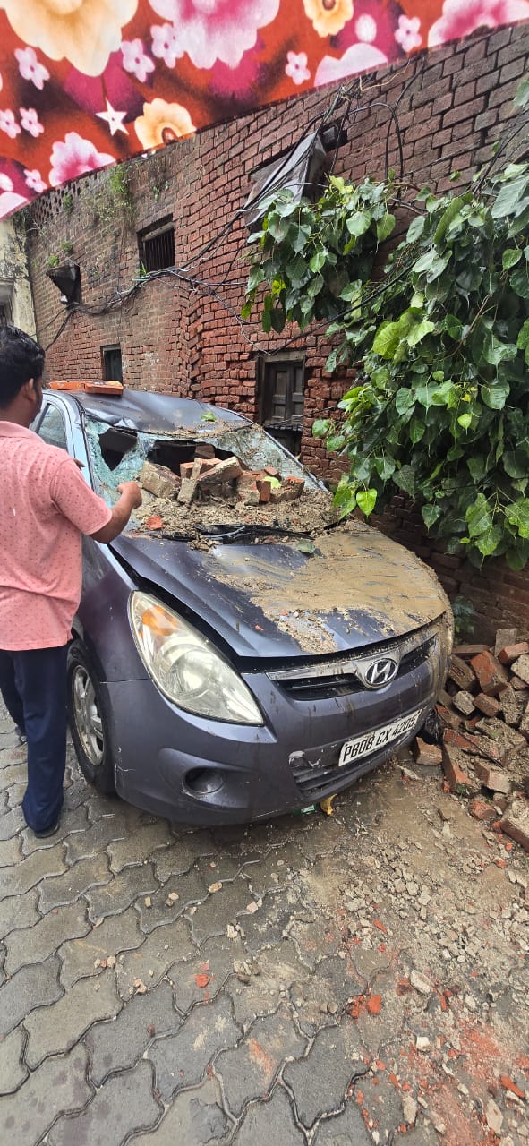 जालंधर में बरसात से गिरी दीवार कार हुई क्षतिग्रस्त